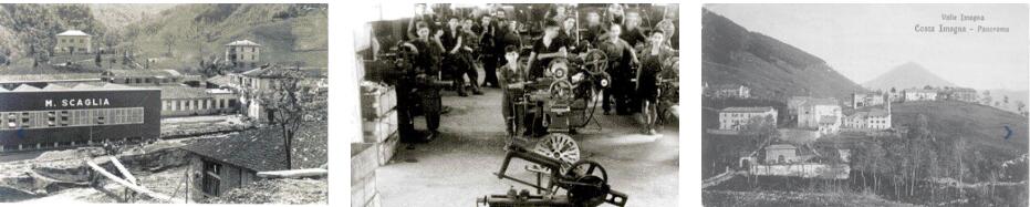 Scaglia家族曾经都是技艺高超的木匠(缠线管和模具);他们于1700年底从Imagna 山谷迁移到Bembilla。1868年底,三代人中的Martino迁移到米兰,当时这个伦巴蒂大区的主要城市是整个意大利半岛最重要的市场和快速发展的经济文化中心。1881年,Martino Scaglia公司在此建立,Martino先生把技艺传授给他的两个儿子:Stefano负责生产,Martino主管销售。从新世纪初期直到第一次世界大战开始,木制缠线管、线轴和带轮市场持续发展,因此Stefano回到他的家乡Brembilla,在那里的一栋新建筑里建立了更大的生产基地,在随后的几年里经过了几次扩大和翻新,时至今日它仍是Scaglia集团的基地。